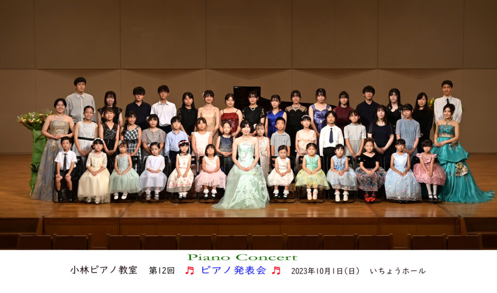 2023年10月1日(日) 第12回 小林ピアノ教室 発表会(八王子市芸術文化会館 いちょうホール 小ホール) 今年度は、実に4年ぶりとなる、生徒全員が一堂に会しての発表会となりました。入れ替え制ではなく、未就学児から大学生まで、通しで行うことが出来た…